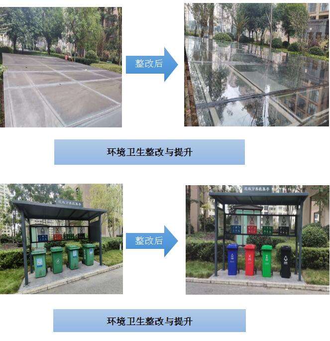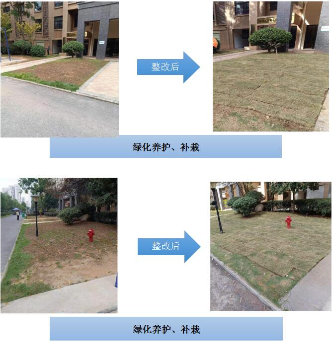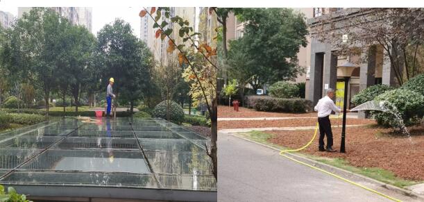 現(xiàn)場(chǎng)組按計(jì)劃開展清理衛(wèi)生死角、綠化補(bǔ)栽、墻面刷漆、采光棚清洗等工作。